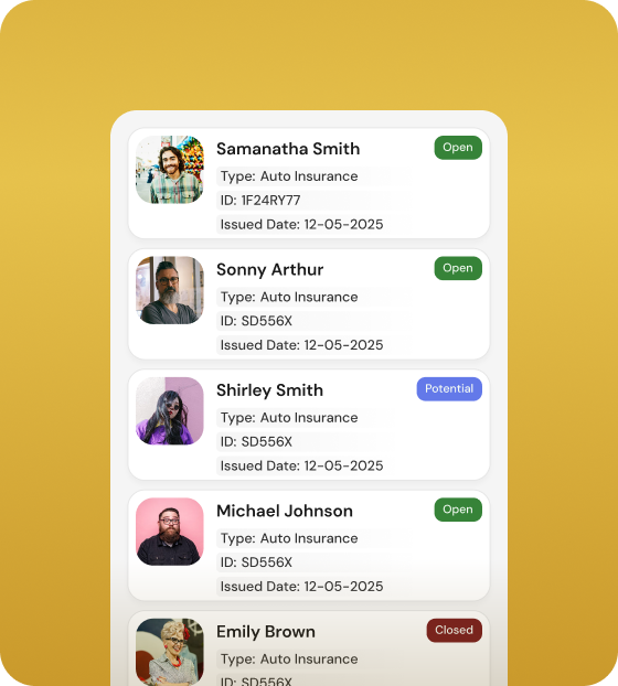 Push renewal prompts, receive documents, and sync follow-ups—no email delays.
